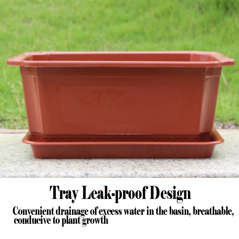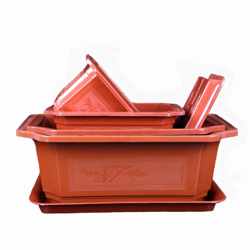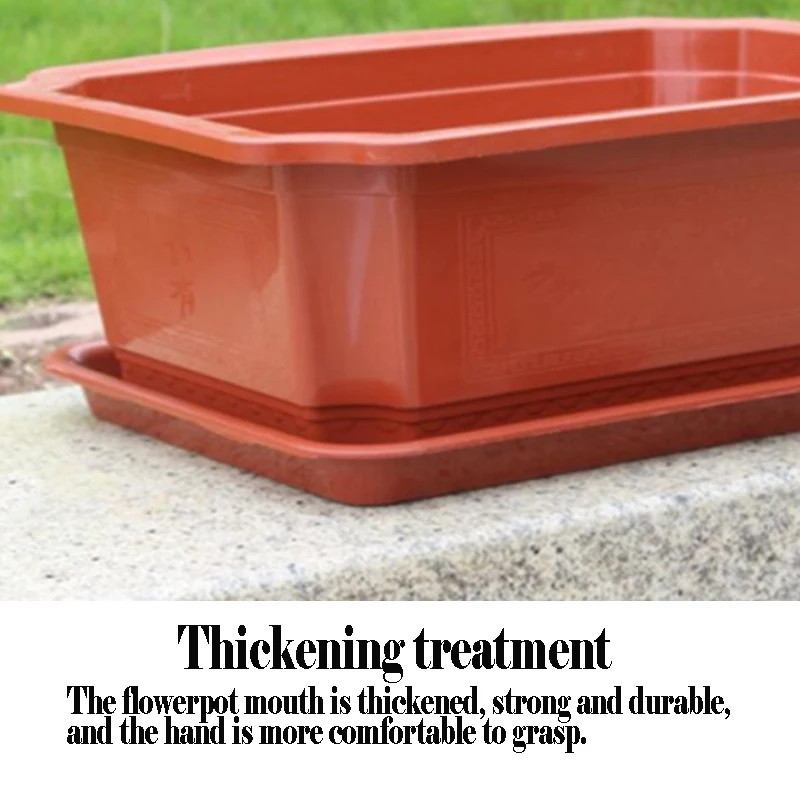 2PC with Tray Thickened Rectangular Octagonal Plastic Flowerpots Household Nursery Bonsai Plant Vegetable Pot