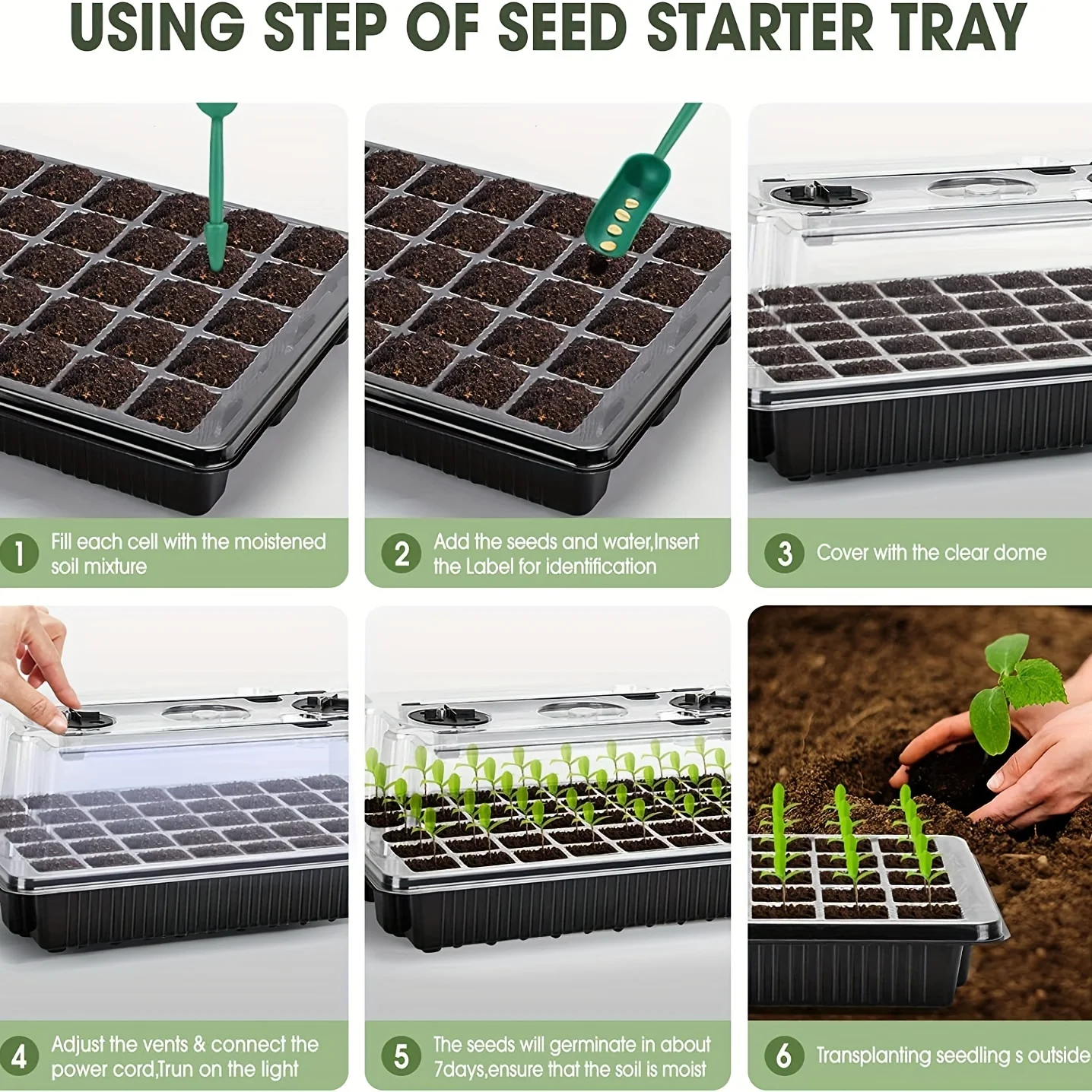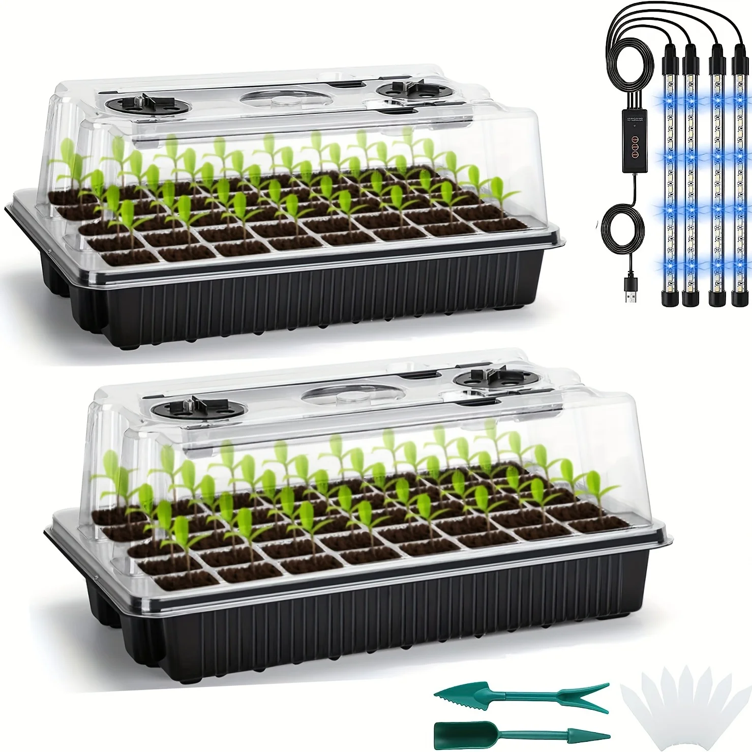 Black 2-Pack Seed Germination Trays – 80-Cell Kit W/ LED Grow Lights, Timer – Ideal for Home Gardening & Greenhouses