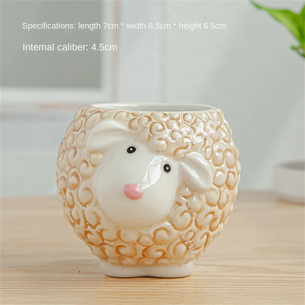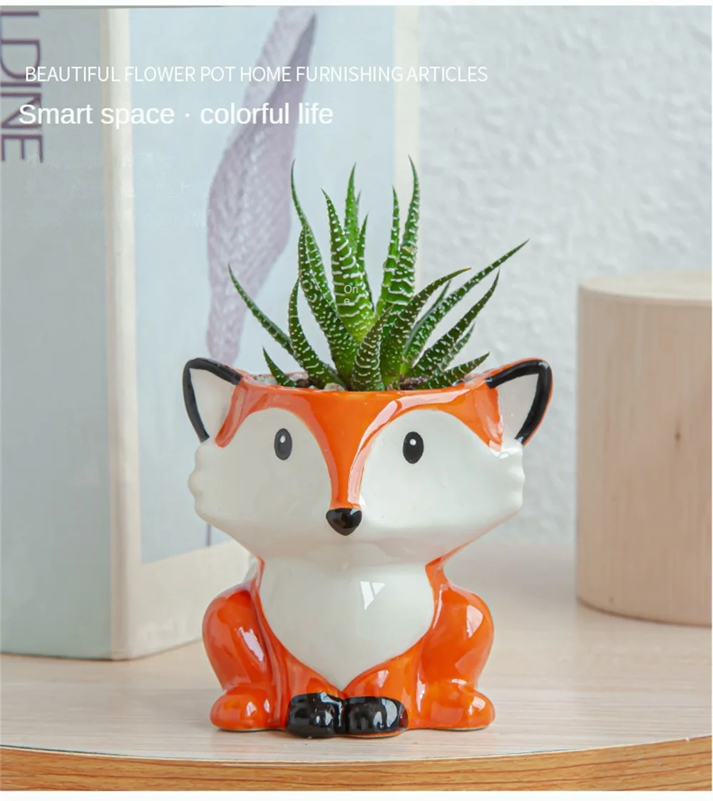 Ceramic Animal Flower Pot Cartoon Fox Zebra Sheep Cow Mini Pot Succulents Plants Bonsai Pots Vintage Vase Home Garden Decoration