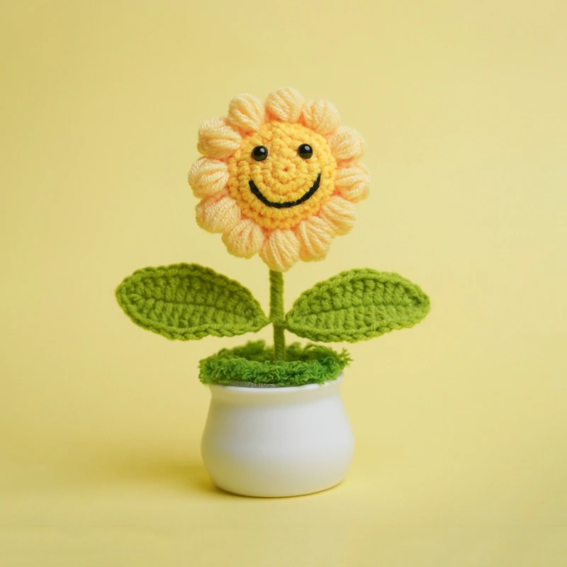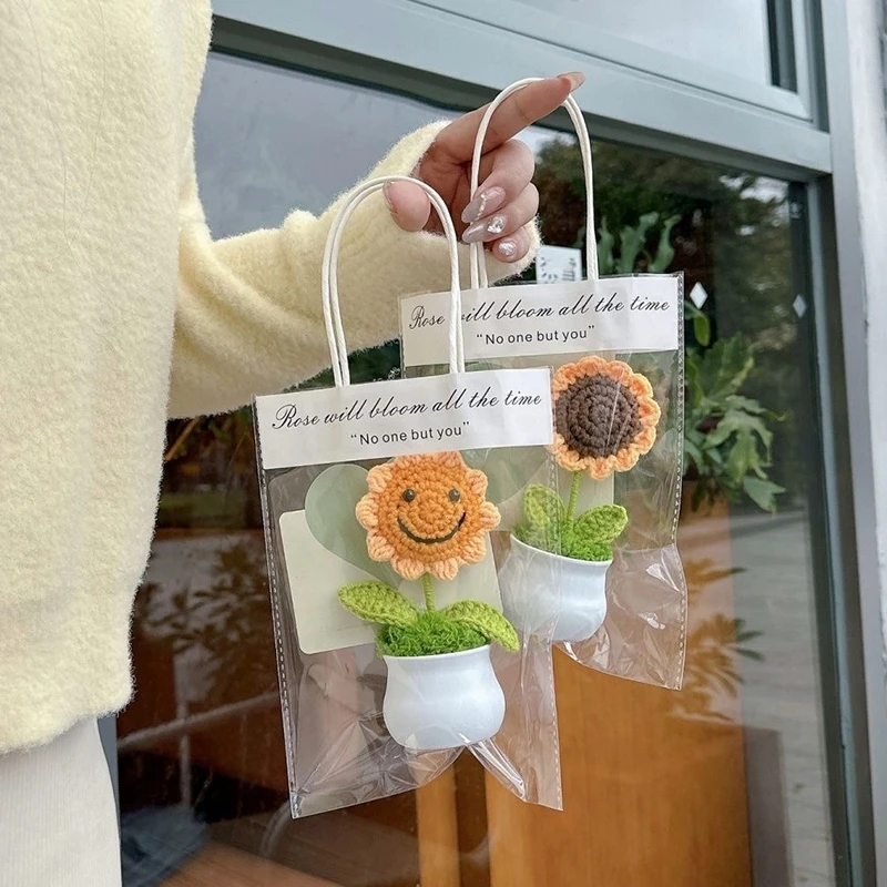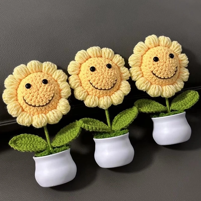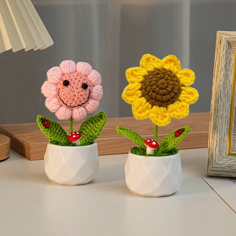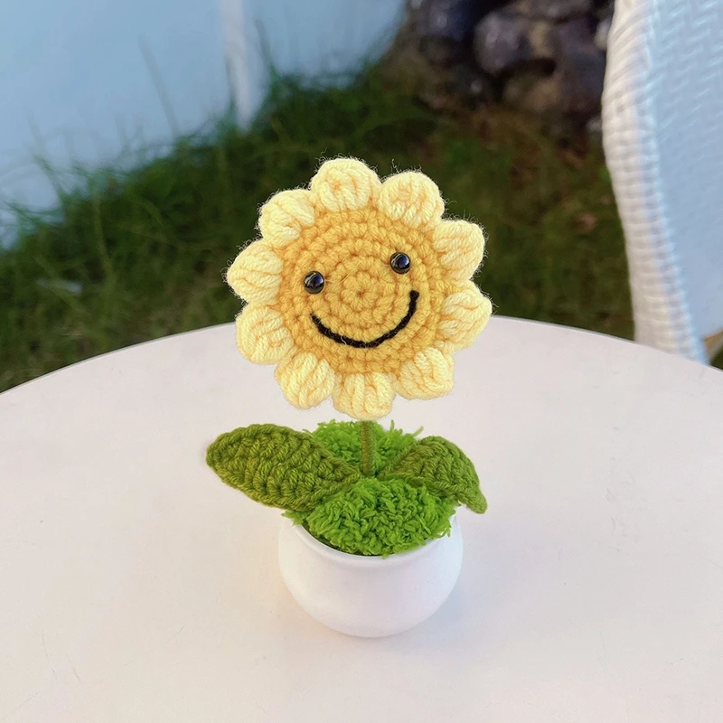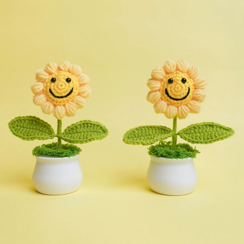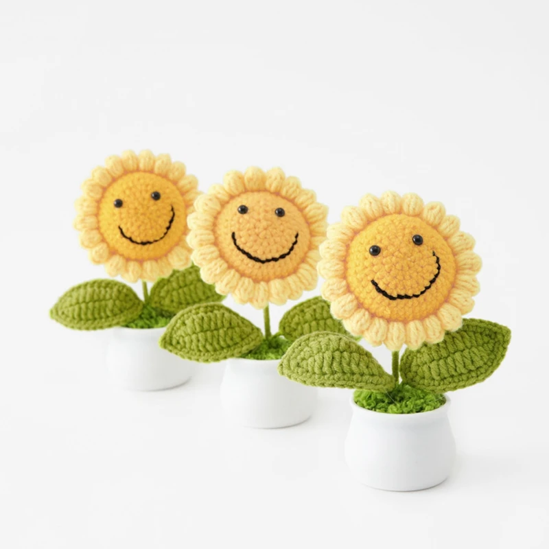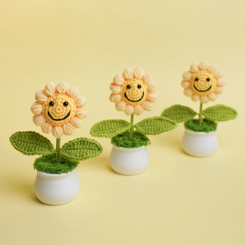 Sunflowers Girasol Crochet Flower Pots Artificial Hand Woven Flowers Finished Crochet Plant Wedding Guest Gifts Desktop Ornament